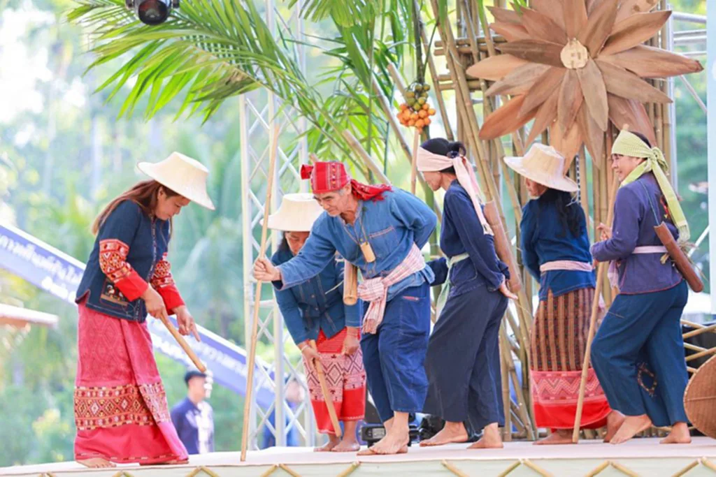กิจกรรมภายในงานเริ่มต้นขึ้นอย่างประทับใจด้วยการแสดง “รำเดินเพลงเสียงจากสาวลาว” ต้อนรับคณะผู้มาเยือน ต่อด้วยการแสดงศิลปวัฒนธรรมพื้นบ้านจากเยาวชนโรงเรียนวัดสะนำในชุด “รำมวยโบราณ” และการละเล่นที่หาชมได้ยากอย่าง “รำนางด้ง” จากชมรมผู้สูงอายุตำบลบ้านไร่ ไฮไลต์สำคัญอยู่ที่พิธีเปิด