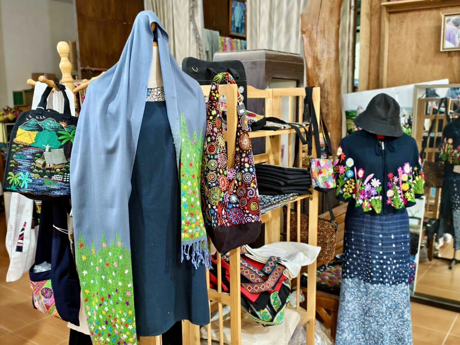 กิจกรรม Chiangrai Life Artist Studio for Tourism Media Fam Trip เส้นทางที่ 4 :มรดกศิลปะล้านนา (Lanna Art Heritage) เริ่มที่ศูนย์การเรียนรู้ชุมชนบ้านสันกองมีนางนิธี สุธรรมรักษ์ ศิลปินปักผ้าผู้สร้างสรรค์ผลงานด้วยเทคนิคปักลายเม็ดข้าวซึ่งเป็นเอกลักษณ์ให้การต้อนรับพร้อมกับสมาชิกกลุ่มผู้สูงอายุที่มาแสดงฝีมือการปักผ้า พร้อมกับพาคณะทำความรู้จักกระบวนการป้กและแรงบันดาลใจที่ถ่ายทอดวิถีชีชุมชนผ่านลวดลายบนผืนผ้าอย่างประณีตและงดงาม