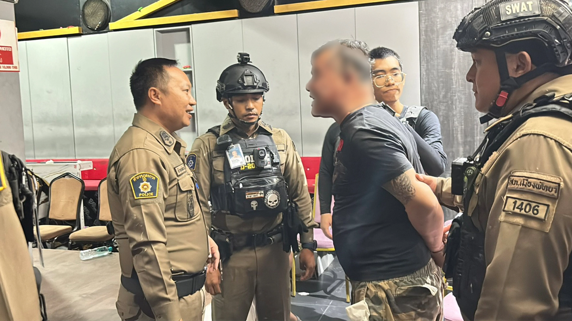 เจ้าหน้าที่ตำรวจได้ใช้โปลิศไลน์กั้นห้ามบุคคลไม่เกี่ยวข้องเข้าใกล้จุดเกิดเหตุ และสามารถควบคุมตัวผู้ก่อเหตุไว้ได้ ทราบว่าเป็นเจ้าหน้าที่ตำรวจสังกัด สภ.เมืองพัทยา แต่ไม่ได้เปิดเผยชื่อกับผู้สื่อข่าว พร้อมยึดอาวุธปืนขนาด 11 ม.ม. พร้อมเครื่องกระสุนไว้เป็นหลักฐาน