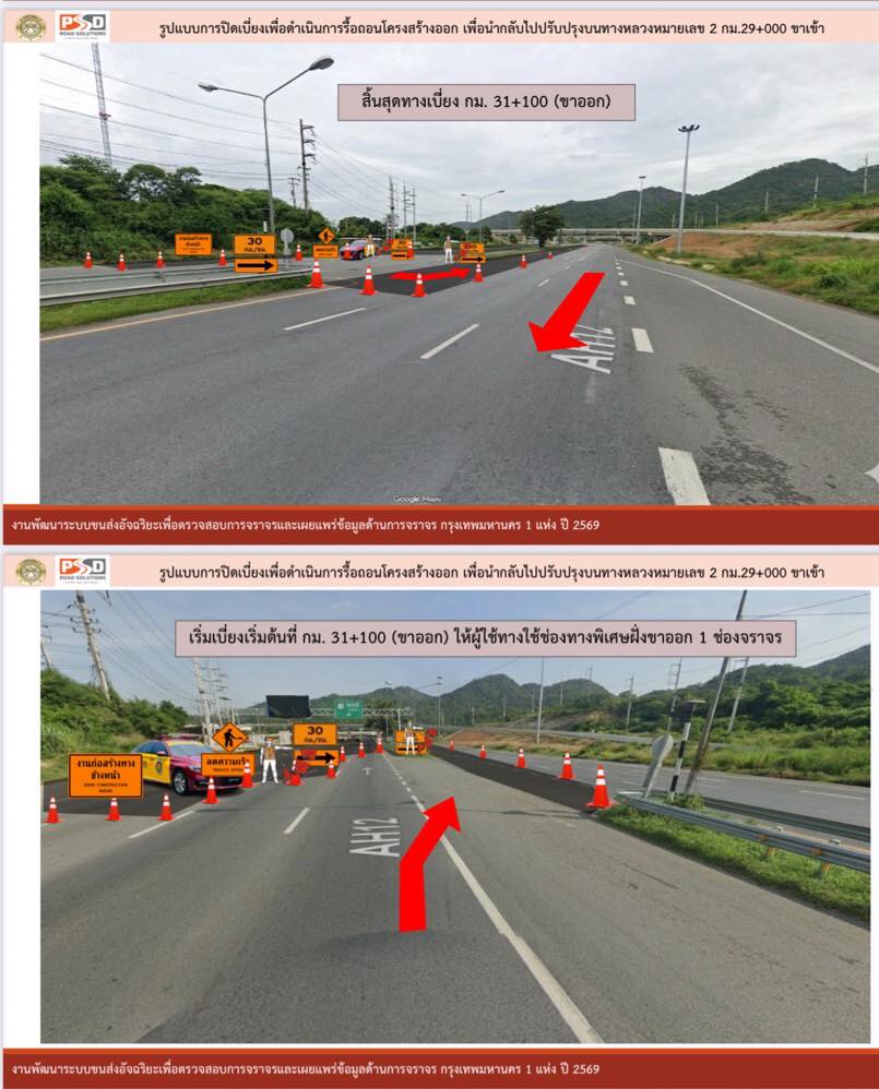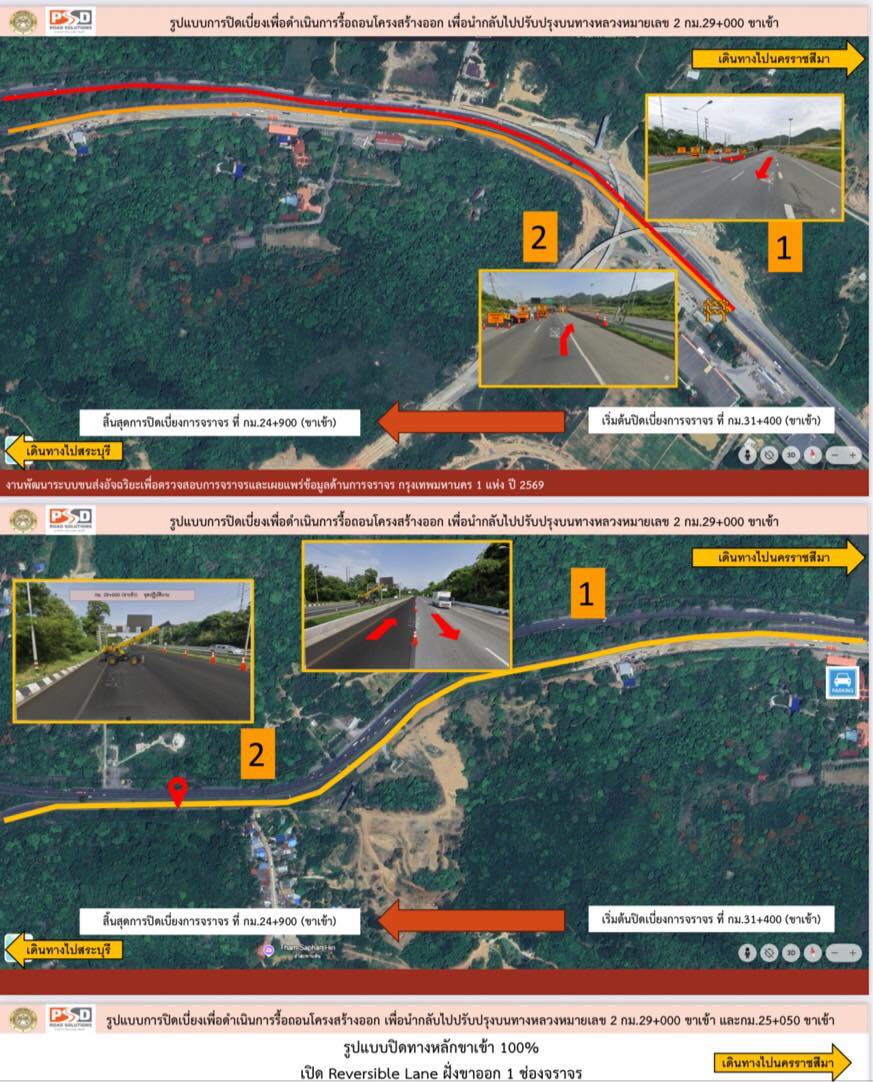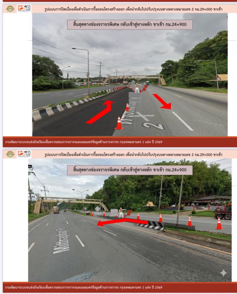 – ทำการเบี่ยงออกช่องทางพิเศษที่ กม.24 บริเวณหน้าโรงเรียนซับบอน